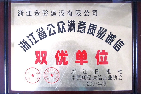 浙江省公眾滿意質(zhì)量誠信雙優(yōu)單位