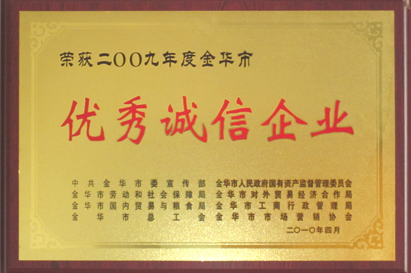 2009年度金華市優(yōu)秀誠信企業(yè)