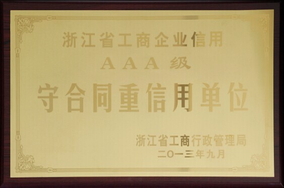 浙江省工商企業(yè)信用AAA級守合同重信用單位