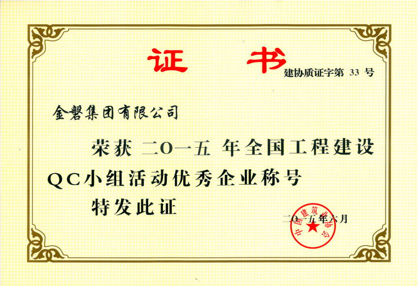 全國工程建設(shè)QC小組活動優(yōu)秀企業(yè)稱號