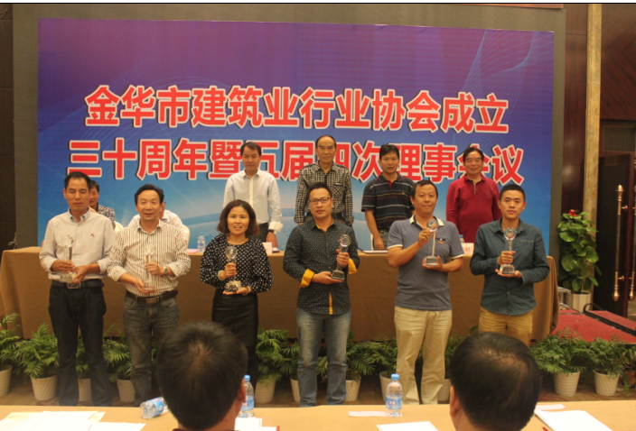 10月22日,金華市建筑業(yè)行業(yè)協(xié)會成立三十周年暨五屆四次理事會議召開,市建設(shè)局副局長孫金榮、市建協(xié)會長吳文亞等領(lǐng)導(dǎo)及相關(guān)單位代表共兩百余人出席參加了會議。大會表彰了長期以來在全市建協(xié)工作中作出突出貢獻的單位和個人,金磐集團榮獲多項榮譽。