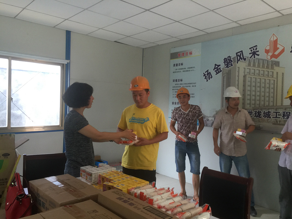 炎炎夏日,酷暑難耐,盡管今年的溫度持高不下,公司各工地的工人們?nèi)匀蝿谌卧,?jiān)守在各自工作崗位上。7月29日,集團(tuán)公司人力資源部和工程部代表公司到各在建工程施工現(xiàn)場(chǎng),慰問(wèn)正在烈日下辛勤工作的建筑工人。這也是公司延襲多年的一項(xiàng)員工關(guān)懷活動(dòng),旨在關(guān)注現(xiàn)場(chǎng)施工安全、關(guān)心一線員工健康,受到各項(xiàng)目部的廣泛歡迎和好評(píng)。