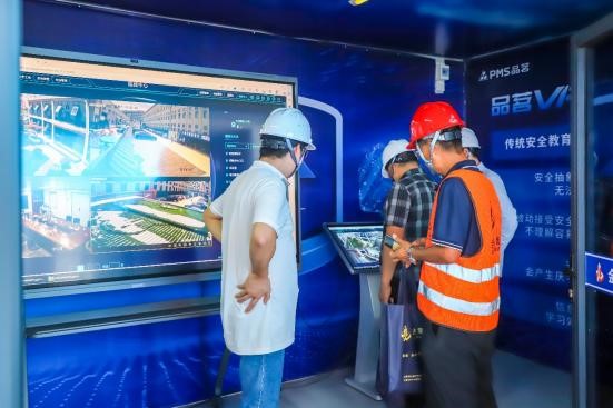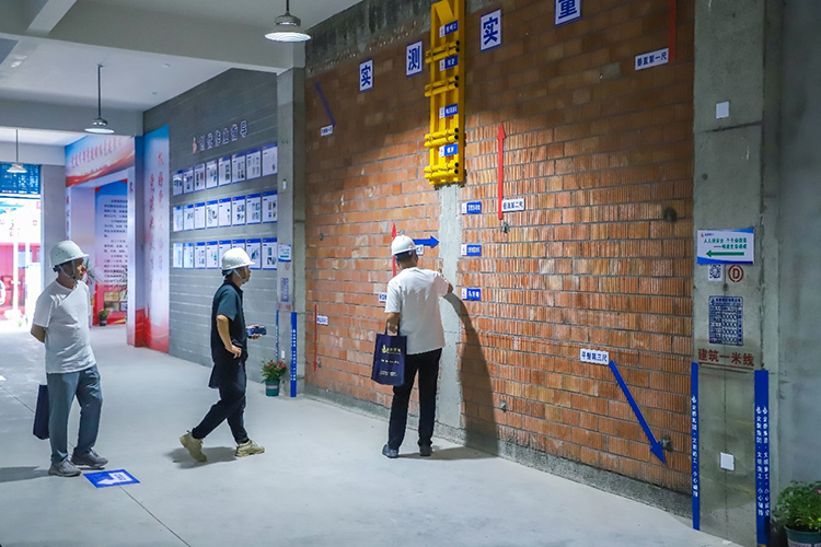 觀摩現(xiàn)場設(shè)置了智慧指揮中心平臺、VR體驗館、安全講評臺、紅色黨建展示區(qū)、質(zhì)量展示區(qū)、智能機器人演示區(qū)等觀摩區(qū)域,共計17個觀摩點位。全體參會人員在各觀摩區(qū)域負(fù)責(zé)工作人員人的帶領(lǐng)和介紹下有序地參觀,他們看實物、聽介紹,不時交流、不忘學(xué)習(xí)、頻頻拍照,零距離感受標(biāo)準(zhǔn)化、智慧化施工現(xiàn)場和紅色工地的濃厚氛圍。