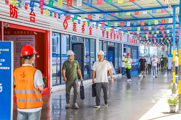在蘭創(chuàng)九聿科創(chuàng)智谷項(xiàng)目分會(huì)場(chǎng),采用“現(xiàn)場(chǎng)+會(huì)場(chǎng)”模式,開啟“看場(chǎng)景、聽經(jīng)驗(yàn)、學(xué)先進(jìn)、談體會(huì)”的沉浸式現(xiàn)場(chǎng)觀摩;顒(dòng)現(xiàn)場(chǎng)設(shè)置了智慧工地展廳、安全體驗(yàn)區(qū)、樣板展示區(qū)、黨建展示區(qū)等多個(gè)展區(qū),以邊走、邊聽、邊看的形式,多維度、全方位展示了項(xiàng)目在科技賦能、安全生產(chǎn)、質(zhì)量管理、黨建引領(lǐng)等方面的特色亮點(diǎn)。